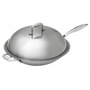 Wokpan gemaakt van stevig edelstaal en stevige steel, de pan heeft een ronde bodem. De pan is geschikt voor inductie.