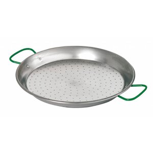 Braadpan meet extra handgrepen aan de buitenzijde. De pan heeft een doorsnede van 65cm.