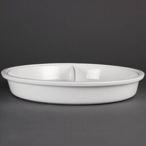 Wit bord gemaakt van hoge kwaliteit porselein, het bord is onderverdeeld in 2 delen. Handig om verschillende soorten voedsel van elkaar gescheiden te houden.