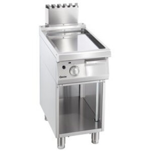 Gas bakplaat met glad oppervlak en open onderbouw, het product heeft handig knoppen op de temperatuur exact mee te regelen. Handig om vis of vlees op te bakken.
