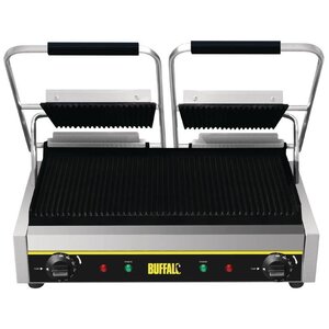 Deze dubbele contact grill van Buffalo is een onmisbaar item bij de lunchroom of sandwichbar. Het heeft krachtige warmte elementen, waardoor snel de gewenste temperatuur kan worden behaald.