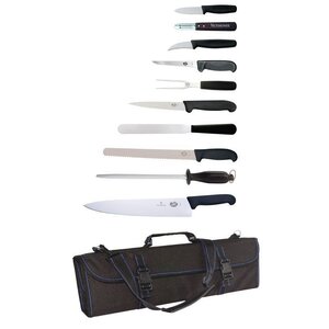 8-delige messenset van het Zwitserse merk Victorinox. Let op: de set wordt met een slijpstaaf en foudraal van Vogue in plaats van Victorinox geleverd.