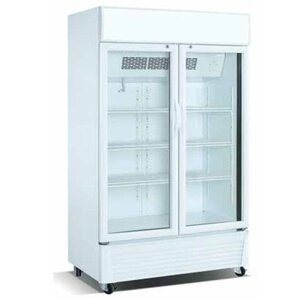 Deze koelkast is voorzien van twee glazen klapdeuren. Met een inhoud van 590 liter heeft u ruimte voor diverse ingrediÌÇnten. Wij leveren dit model met 6 roosters. Dit model is voorzien van 4 wielen, waardoor verplaatsen eenvoudig is.