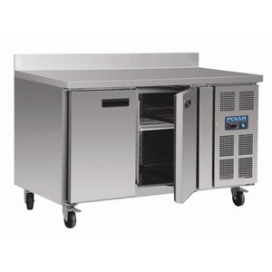 Polar RVS 2-deurs koelwerkbank met spatrand | 96 x 136 x 70 cm