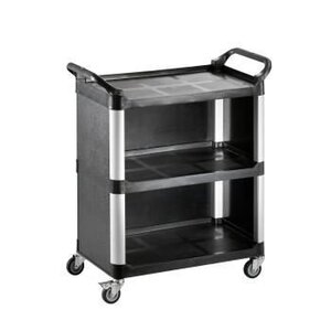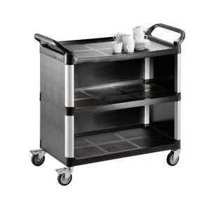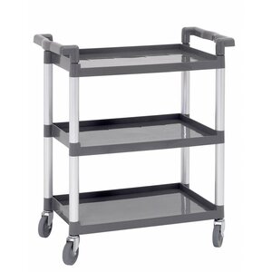 De kunststof serveerwagen met 3 bladen is een onmisbare horeca equipement in de professionele keuken. Dit model is overigens ook als transportwagen te gebruiken of als afruim wagen.