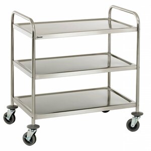 De horeca serveerwagen RVS met 3 bladen is geschikt voor elke disciplines in de horeca. De serveerwagen is tevens geschikt om als transportwagen te gebruiken. De serveerwagen is van hoogwaardig RVS vervaardigd.